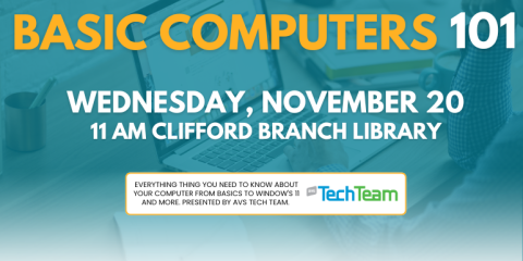 Everything thing you need to know about your computer from basics to Window's 11 and more. Presented by AVS Tech Team. If you would like to bring your laptop feel free to do that, there will be room for you.