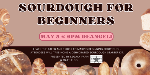 Learn the steps and tricks to making beginning sourdough. Attendees will take home a dehydrated sourdough starter kit and information on how to make their sourdough.