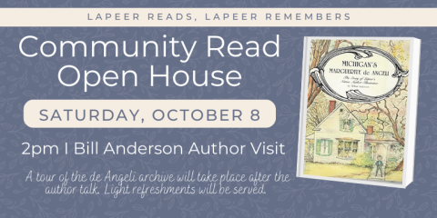Bill Anderson, author of the 2022 Community Read Michigan's Marguerite De Angeli: The Story of Lapeer's Native Author/Illustrator will share stories about the beloved author and speak about his time with de Angeli while writing the book.