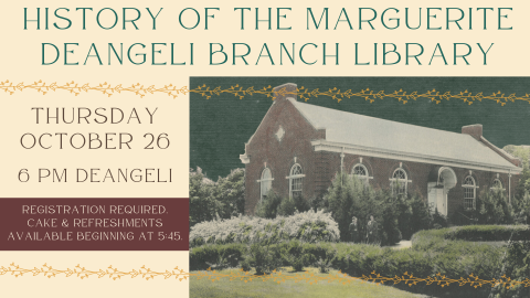 The deAngeli Branch Library is turning 100! Join us in celebrating this centennial milestone with a presentation about how it all began. Researcher Jan Gillis will share the origins of how the deAngeli branch came to be.
