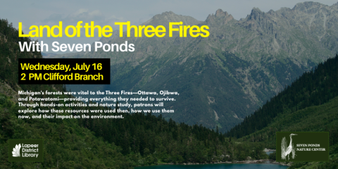 Michigan's once vast forest were giant supermarkets to Ottawa , Ojibwa, and Potawatomi; the Three Fires. Michigan's natural resources provided everything they needed for survival. Through hands on activities and hands on nature study, patrons will learn how natural resources were used by the Three Fire, how we use them today, and the impact of each on our natural environment.