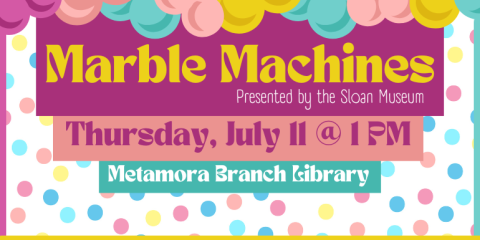 Primary tabs Upcoming List Month Week Day Add To My Calendar Print Share Program Type: Arts & Crafts, Gaming, Summer Reading Program Age Group: Kids, Families Please note you are looking at an event that has already happened. Registration is required for this event. Registration is no longer available for this event. Program Description Event Details A hands-on STEM program using marbles & engineering, presented by the Sloan Museum. For kids ages 5-12.