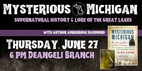 Author and paranormal researcher Amberrose Hammond will take you on a strange and fun journey into Michigan’s supernatural past through ghosts, legends, monsters and more as she discusses her latest book, Mysterious Michigan.