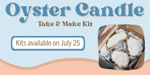 Create your own oyster candle! All materials provided.Pick up your kits at the Reference Desk at the deAngeli Branch Library starting July 25.