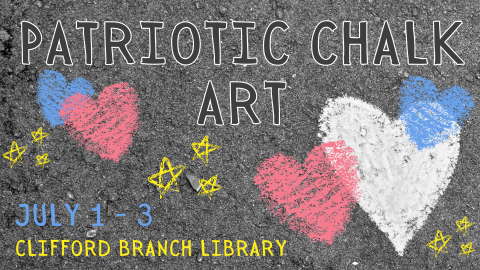 Create your best patriotic display all around the library sidewalks and throughout the park. Chalk will be provided during library hours!