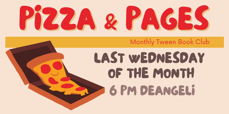 Each month has a new theme! Find out this month's theme at the Children's Desk. The group will meet monthly at deAngeli to discuss, make a craft, and eat pizza. For tweens ages 8-12 only.