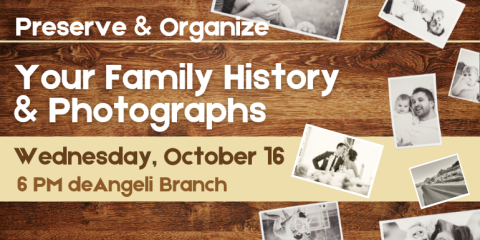 Presented by a Certified Archivist, learn how to care for your family documents and photos inexpensively. We will also discuss what to keep, how to stay organized, and digital scanning options.