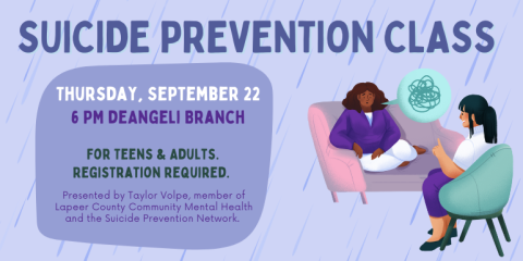Taylor Volpe, member of Lapeer County Community Mental Health and the Suicide Prevention Network will talk about why the amount of suicides are going up in Lapeer County and the factors that put people at risk for suicidal thoughts that could possibly lead them to attempt suicide. Taylor will teach us what warning signs to look for and what to do if you have a loved one that shows any of the warning signs. She will also talk about resources and treatment options available in Lapeer County.