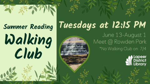 Kindness, friendship and exercise all rolled into one! Join us this summer at Rowden Park in Lapeer for our new Walking Club! Meet up at in the parking lot behind the Rowden Park sign. Registration is not required but suggested if you would like to receive reminders about the event.