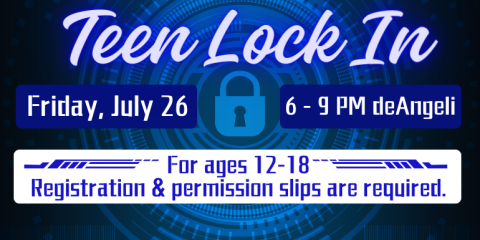 Get locked in the library with other teens after it closes! Enjoy games, food and more! Registration and permission slips are required. See the fiction desk for more details.