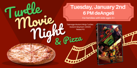 Have a slice of a Ninja Turtle's favorite food and watch their newest movie. For families with kids ages 6+All children must have an adult present. Registration is required for all viewers.