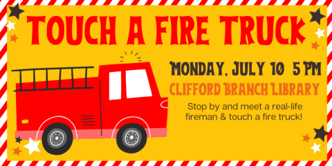 Primary tabs Upcoming List Month Week Day Add To My Calendar Print Share Program Type: Family Friendly, Summer Reading Program Age Group: Kids, Families Please note you are looking at an event that has already happened. Registration is required for this event. Registration is no longer available for this event. Program Description Event Details Stop by and meet a real-life fireman & touch a fire truck! Registration is required for program updates.