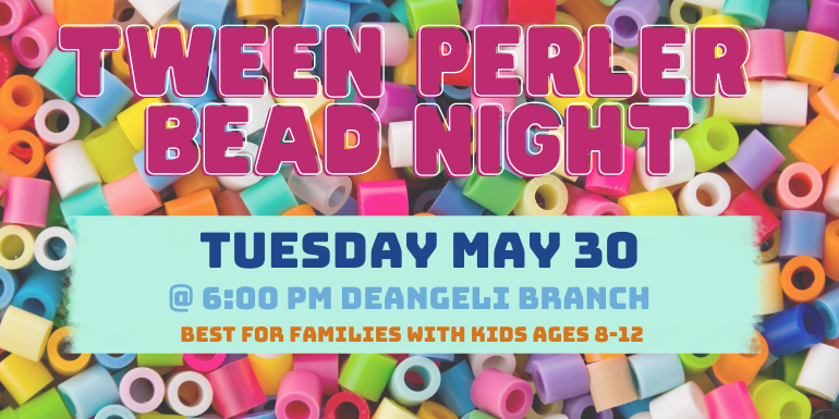 Come to the library and make a perler bead creation with our supplies. Best for families with kids 8-12.