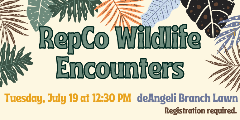 RepCo Wildlife Encounters Tuesday, July 19 at 12:30 PM deAngeli Branch Lawn Registration required.